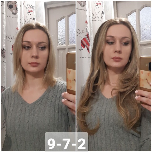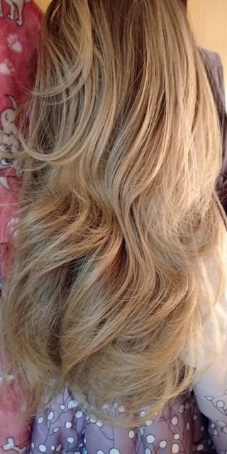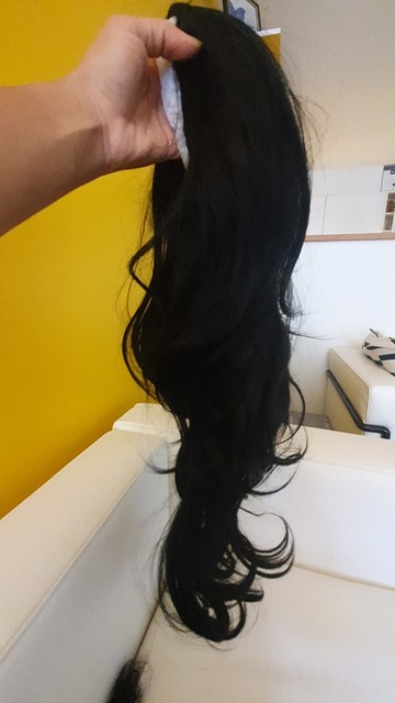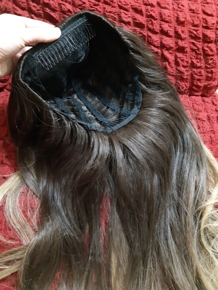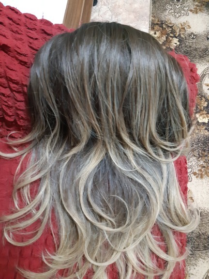 волосы просто сказка на ощупь как настоящие только крашеные, с цветом не угадала но не беда перекрашу свои под них , рекомендую крепятся легко и хорошо держаться и не тяжёлые