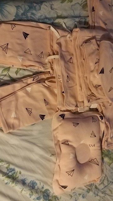 Muy contenta con mi compra. Algodón muy suave. Bonito color y estampado. Corchetes de plástico blanco. Bien cosido, sin hilos. Huele bien. Viene bien empaquetado y etiquetado. La almohada es súper blandita y práctica. El surtido es bueno y variado aunq si tu bebé es muy pequeño tendrás q esperar xq la talla más pequeña viene bastante grande. El color elegido vale tanto para niño como para niña.
